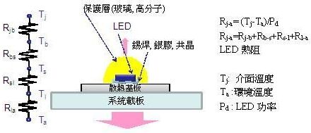 另外,改用越大尺寸的晶粒LED熱阻值就越小。 二為固晶(Die Bonding)方式,由打線(Wire Bonding)改為覆晶(Flip-Chip),傳統(tǒng)LED封裝使用打線方式,但相對于金屬,藍寶石傳熱相當慢,所以熱源會從金屬線傳導,但散熱效果不佳。 Lumileds公司將晶粒改以覆晶方式倒置于散熱基板上,欲排除藍寶石不要在熱傳導路徑上,并在幾何結(jié)構(gòu)上增加傳熱面積以降低熱阻。 三為封裝基板采用氧化鋁、氮化鋁、氧化鈹及氮化硼等高導熱以及與LED熱膨脹系數(shù)匹配的材料,進而降低整個散熱基板總熱阻方式。