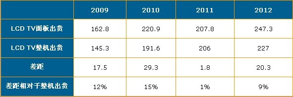 - 2010年電視面板出貨與整機出貨差距達(dá)到了15%