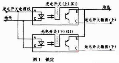 加鎖狀態(tài)下,計算機檢測光電開關(guān)輸出(上)信號,若為低電平,則輸出加鎖控制信號到電機,控制凸輪向上運動,擋片(圖1中虛線所示)隨凸輪運動逐漸擋住光電開關(guān)(上)發(fā)光部分,K1停止工作,光電開關(guān)輸出(上)變?yōu)楦唠娖剑醇渔i到位信號,控制計算機接收高電平并撤銷對電機的控制信號;解鎖狀態(tài)下,計算機檢測光電開關(guān)輸出(下)信號,若為低電平,則輸出解鎖控制信號到電機,控制凸輪向下運動,擋片隨凸輪運動逐漸擋住光電開關(guān)(下)發(fā)光部分,K2停止工作,光電開關(guān)輸出(下)變?yōu)楦唠娖剑唇怄i到位信號,控制計算機接收高電平并撤銷對電機的控制信號。