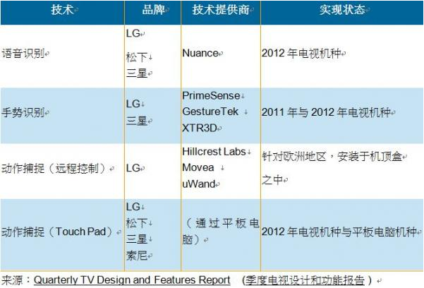在2012年消費性電子展(CES)上,語音識別和手勢識別的原型機首次展出;但事實上手勢識別功能已經(jīng)在市場上存在一段時間,只是未內(nèi)建在電視機里,例如Xbox游戲機的微軟Kinect手勢識別等。