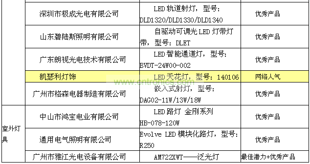 2012年6月9日,2012廣州國際照明展覽會開幕當天,主辦方組織20名終審專家對終審會議評選出來的獲獎候選產品進行現場的考核評審,最終確定35個優秀產品獎,3個最佳創新獎、5個最佳潛力獎的獲獎名單;5個最佳網絡人氣獎是由網友海選出來的名單。