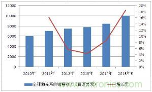 2010---2015年全球激光設備銷售規模(單位:百萬美元)