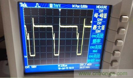 7、在輸入AC265V時實際測量開關管DS極之間最高峰值電壓有524V,而開關管DS極之間的距離僅有0.67mm,安全距離明顯不夠,因此很容易造成炸機現象,特別是在助焊劑不純的情況下,DS極之間會形成一個電阻,那就更加容易出現炸機現象。改善對策是重新修改PCB將開關管的引腳改為品字形設計,加大安全距離。