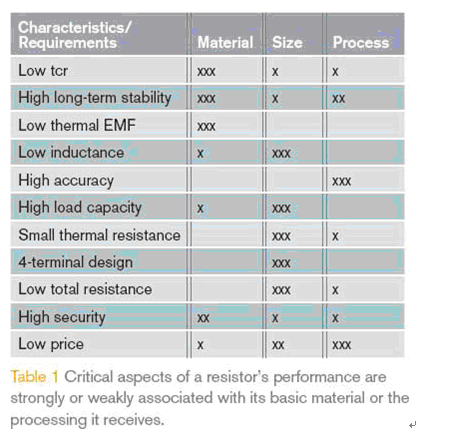 理想的電流檢測電阻應(yīng)該完全與這些參數(shù)無關(guān),當(dāng)然這樣的電阻是不存在的。實際的電阻特性見表1,包括溫度系數(shù)TCR,長期穩(wěn)定性,熱電動勢,負(fù)載能力,電感和線性度,其中的部分特性由材料本身決定;部分特性由元件設(shè)計決定,還有一些參數(shù)決定于生產(chǎn)制程。