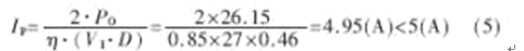 設PWM控制最大占空比Dmax=42%,如果初級繞組的電感量設計得大,則流過功率開關管和輸出濾波電容的電流峰值小,但由于電流上升斜率小,電路抗干擾能力差且功率開關管開通電流大;電感量小時,電流脈動大,沖擊電流大。因此設計電感電流工作在連續工作狀態,輕負載時取額定功率的一半,由(2)式可知: