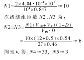 損耗功率PD主要取決于VI、多路輸出最大負載電流之和ΣILOAD以及主功率線圈比N等,其近似計算公式如下: