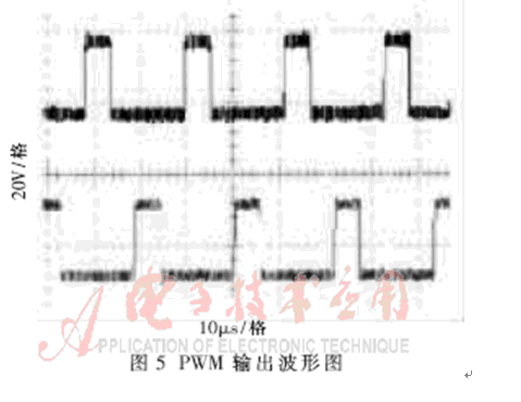 在以IGBT設計的逆變電源中,PWM控制電路是極其重要的組成部分,SG3525脈寬調制型控制器作為SG3524的改進型,更適合于開關器件的雙端DC-DC變換器,它的外圍電路原理圖如圖4所示,輸出波形如圖5所示。