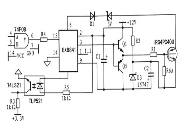 圖五:EXB841與IGBT柵-極之間的連接電路原理