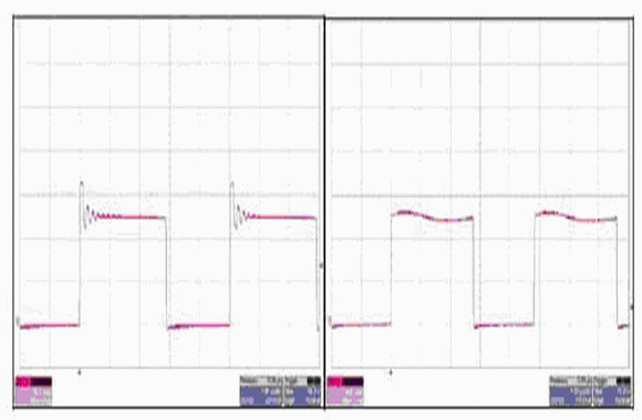 圖 6 傳統(tǒng)同步反向電源的負(fù)振鈴要比有源鉗位反向電源的負(fù)振鈴嚴(yán)重很多