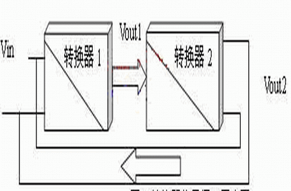 要實(shí)現(xiàn)節(jié)能循環(huán)利用,主要考慮將消耗在電阻負(fù)載上的能量更加合理的利用。如果能將輸出電壓Vout再還原為輸入電壓Vin,則輸出電能轉(zhuǎn)換為輸入的電能,便可以實(shí)現(xiàn)電能的循環(huán)利用,如圖2所示:將原有轉(zhuǎn)換器的電阻負(fù)載R1用等效輸入阻抗的轉(zhuǎn)換器2取代,轉(zhuǎn)換器2的輸出接轉(zhuǎn)換器1的輸入。則與R1等效輸入阻抗的轉(zhuǎn)換器2從轉(zhuǎn)換器1輸出端消耗的能量被轉(zhuǎn)換到轉(zhuǎn)換器1的輸入端,再經(jīng)轉(zhuǎn)換器1又到轉(zhuǎn)換器2的輸入端,實(shí)現(xiàn)了能量的循環(huán)利用。如果在理想情況下,沒有轉(zhuǎn)換損耗,則系統(tǒng)可以自循環(huán)工作。當(dāng)然這是無法實(shí)現(xiàn)的,所以在能量分析時,要引入轉(zhuǎn)換過程的消耗。
