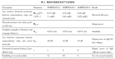 SEMITRANS模塊外殼的主要參數(shù)以及這些參數(shù)對(duì)最終產(chǎn)品性能所產(chǎn)生的影響的詳細(xì)信息如表2所列。