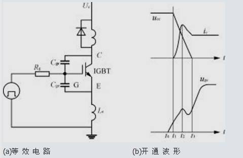 柵極驅動電壓的上升、下降速率對IGBT開通關斷過程有著較大的影響。IGBT的MOS溝道受柵極電壓的直接控制,而MOSFET部分的漏極電流控制著雙極部分的柵極電流,使得IGBT的開通特性主要決定于它的MOSFET部分,所以IGBT的開通受柵極驅動波形的影響較大。IGBT的關斷特性主要取決于內部少子的復合速率,少子的復合受MOSFET的關斷影響,所以柵極驅動對IGBT的關斷也有影響。