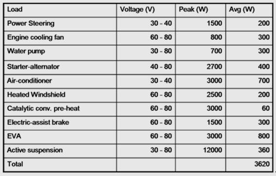 圖1. 各種汽車應用及其相關電壓和功率范圍的幾個實例