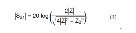 然后,利用ABCD參數和散射(S)參數之間的關系,可以得到插入損耗S21的幅度為:
