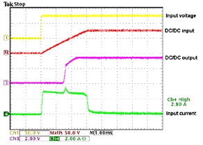 圖4. 通信系統(tǒng)在標(biāo)稱輸入電壓和最大輸出負(fù)載時(shí)的沖擊電流限值(DC/DC電源)