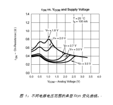 便攜式產(chǎn)品通常由電池供電,因此功耗是選擇模擬開關(guān)時(shí)的一個(gè)重要考慮因素。大部分便攜式系統(tǒng)需要多種不同的供電電壓。模擬開關(guān)的供電可能來(lái)自于電池或經(jīng)過(guò)電源管理模塊調(diào)節(jié)過(guò)的電源輸出,開關(guān)的控制輸入信號(hào)也可能來(lái)自于電源電壓不同的ASIC。當(dāng)控制輸入電壓等于0或VCC時(shí),CMOS控制電路的功耗非常低。