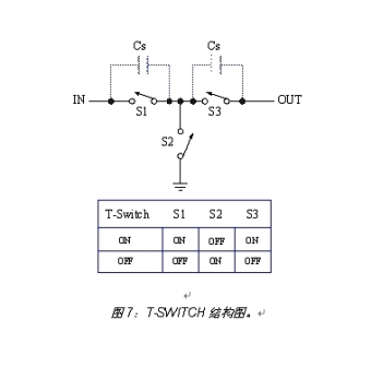 隔離度和串?dāng)_作為模擬開關(guān)的又一項(xiàng)重要性能指標(biāo),在高頻率信號(hào)的切換中越來(lái)越受到人們的關(guān)注。英聯(lián)電子的高隔離度模擬開關(guān)采用T-Switch結(jié)構(gòu),有效實(shí)現(xiàn)了信號(hào)隔離,抑制了信號(hào)串?dāng)_。圖7是T-Switch結(jié)構(gòu)圖。當(dāng)開關(guān)導(dǎo)通時(shí),內(nèi)部的S1、S3閉合,S2斷開,從而實(shí)現(xiàn)信號(hào)的有效傳輸;當(dāng)開關(guān)斷開時(shí),S1、S3斷開,S2 閉合,這樣輸入端-Cs-地形成了一條耦合回路,同時(shí)由于兩個(gè)Cs導(dǎo)通寄生電容的存在,輸入信號(hào)更難耦合到信號(hào)輸出級(jí),這樣提高了開關(guān)的隔離度和抗串?dāng)_能力。