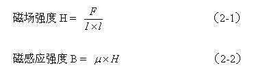(2-1)式中磁場強度H的單位為奧斯特(Oe),力F的單位為牛頓(N),電流I的單位為安培(A),導線長度的單位為米(m)。(2-2)式中,磁感應強度B的單位為特斯拉(T), 為導磁率,單位為亨/米(H/m),在真空中的導磁率記為 , = 1。由于特斯拉的單位太大,人們經常使用高斯(Gs)作為磁感應強度B的單位。1特斯拉等于10000高(1T=104Gs)。