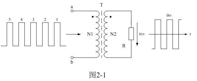 為了簡(jiǎn)單起見(jiàn),我們把單激式變壓器開(kāi)關(guān)電源等效成如圖2-1所示電路,其中我們把直流輸入電壓通過(guò)控制開(kāi)關(guān)通、斷的作用,看成是一序列直流脈沖電壓,即單極性脈沖電壓,直接給開(kāi)關(guān)變壓器供電。這里我們特別把變壓器稱(chēng)為開(kāi)關(guān)變壓器,以表示圖2-1所示電路與一般電源變壓器電路在工作原理方面還有區(qū)別的。