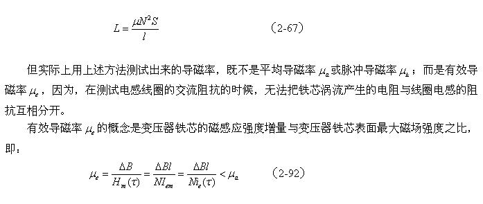 很多人在測試變壓器鐵芯導磁率的時候,都是通過測試變壓器線圈電感量的方法來測試變壓器鐵芯的導磁率;這種測試方法實際上就是測試電感線圈的交流阻抗,然后把阻抗換算成線圈的電感量,最后再根據(2-67)式求出變壓器鐵芯的導磁率。