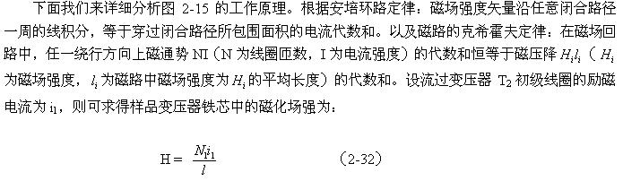 (2-34)式表明:在圖2-15中,任一時刻取樣電壓u1均與磁場強度H成正比,因此,電壓u1可以作為示波器X軸輸入電壓,用示波器的水平方向來顯示磁場強度H。
