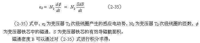 (2-38)式中,e1為加到變壓器T2初級線圈兩端的電壓(這里為方波),或T1變壓器次級線圈輸出的電壓(方波);L1為變壓器T2初級線圈的電感,i1(0)為時間等于零時變壓器T2初級線圈中的勵磁電流。