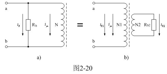 圖2-20-a中,Rb為渦流損耗等效電阻,N為變壓器初級線圈。由此可以看處,由于受渦流損耗的影響,變壓器鐵芯被磁化時,相當于一個渦流損耗等效電阻Rb與變壓器初級線圈N并聯。