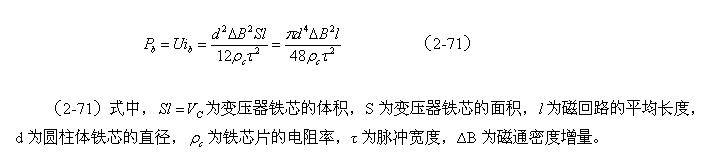 或者,圓柱體變壓器鐵芯的渦流損耗,與磁感強度增量以及鐵芯直徑的四次方成正比,與電阻率及脈沖寬度的平方成反比。