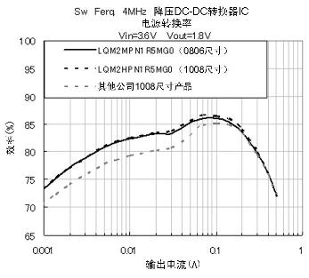 另一方面,PWM模式指相當于通話狀態的高電流負荷狀態,此模式與電感的Rdc特性(直流阻抗)有關,具有低Rdc性能的LQM系列在此領域具有良好的電源轉換效率。