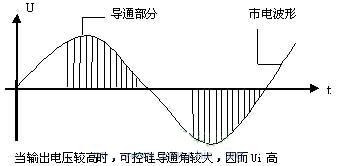可控硅是一個控制電壓的器件,由于可控硅的導通角是可以用電路來控制的,固此隨著輸出電壓Uo的大小變化,可控硅的導通角也隨著變化。加在主變壓器初級的電壓Ui也隨之變化。