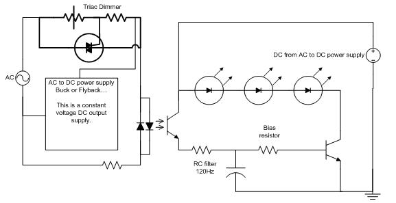 高亮度LED是傳統(tǒng)白熾燈的一種理想替代方案,因為前者的壽命和效率都比后者高得多,而且不同于緊湊型熒光燈泡,這些LED能夠在低溫下工作。然而,和冷陰極熒光燈(CCFL)燈泡一樣,高亮度LED也未能擺脫眾多家庭和應(yīng)用中常見的三端雙向可控硅(TRIAC)調(diào)光器。本文將介紹一種具成本優(yōu)勢的高亮度LED(HBLED)調(diào)光方法。