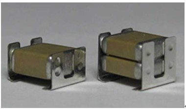金屬端子通過接合材料(LF高溫焊接)與電容器的外部電極相結合,使金屬端子成為接合電路板的媒介。金屬端子的形狀采用能夠降低嘯叫效果的U字形。它只是與電容器上壓電效應比較小的WT面外側部分結合,從而減低電容器振動的傳遞。