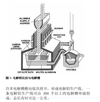 鋁電解 金屬鋁主要是由電解過程生產出來。世界上的很多鋁廠都在擴大生產規模以提高效率,滿足市場對鋁的需求。