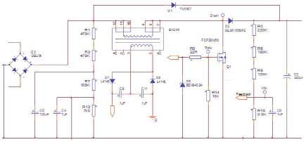這里采用的控制器是FAN4810,該器件包含了先進的平均電流“升壓”型功率因數校正實現電路,電源因此能夠完全滿足IEC1000-3-2規范的要求。它還包含了TriFaultDetect功能,有利于確保不會因PFC中單個組件的故障造成不安全事件。1A的柵極驅動器又極大降低了對外部驅動器電路的需求。此外,它的功率要求很低,既提高了效率也降低了組件成本。該PFC還帶有峰值限流、輸入電壓中斷保護功能,還有一個過壓比較器,可在發生負載突然減小事件時關斷PFC部分。時鐘輸出信號可用來同步下游的PWM級,以減少系統噪聲。