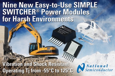 幾款全新的 SIMPLE SWITCHER 電源模塊具有攝氏–55度至+125 度的寬工作溫度范圍,適用于工業(yè)和軍事應(yīng)用等惡劣環(huán)境下所使用的現(xiàn)場(chǎng)可編程門陣列(FPGA)、微處理器、數(shù)字信號(hào)處理器(DSPs)以及其他負(fù)載點(diǎn)(POL)電源轉(zhuǎn)換系統(tǒng)供電。