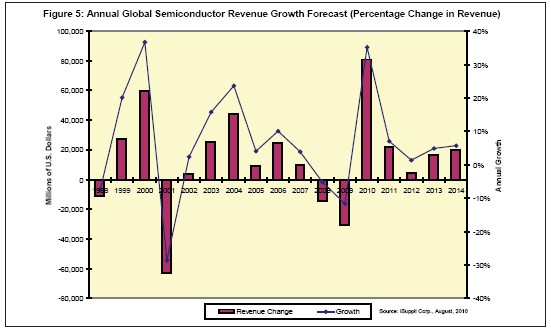 2010年銷售額增幅將達807億美元,這將是半導體產業有史以來最大的年度銷售額增幅。相比之下,第二大增幅略低于600億美元,那是在網絡泡沫時期的2000年創下的紀錄。