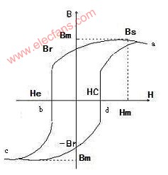 節(jié)能燈中,磁環(huán)一般都選用可飽和環(huán)形磁芯,為使節(jié)能燈半橋逆變電路有良好的開關(guān)特性,產(chǎn)生良好的震蕩波形,要求磁環(huán)必須如圖所示,有近似于矩型的磁滯回線,在S形的特性曲線中,以a點(diǎn)為起點(diǎn),從a點(diǎn)到b點(diǎn),再到c點(diǎn)和d點(diǎn),最后回到原始的a點(diǎn),這樣就得到一個(gè)完整的磁化周期.這樣的磁滯回線有明顯的飽和點(diǎn)和飽和段,而且具有良好的對(duì)稱性.近似于矩型的磁滯回線可使磁環(huán)線圈中的電流波形前后沿較陡,能較好的滿足三極管的驅(qū)動(dòng)要求.如果S形的磁滯回線在各點(diǎn)上不能完全對(duì)稱的話,都將嚴(yán)重影響節(jié)能燈半橋逆變電路的開關(guān)特性,導(dǎo)致?lián)p耗加大,三極管溫升加劇。