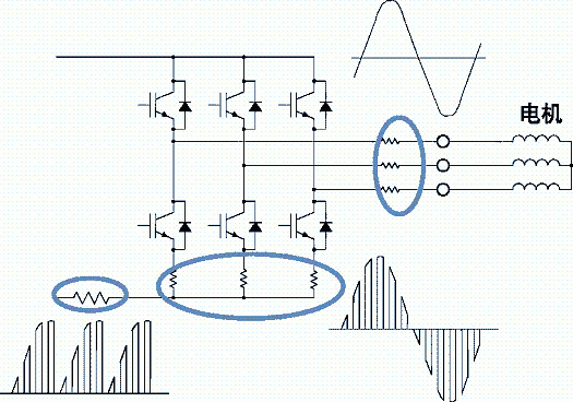 在單個IGBT相位腳上對電流的取樣看起來更容易操作了,但實際上卻不能降低對載波頻率取樣處理的需求。到目前為止,最簡單的、容易獲得的電流信號來自于電機的相位超前,信號內容僅是基本的變頻電機電流。需要考慮的一個重要因素是,小的差分信號在幾毫伏范圍內,在600~1200V電壓間變動。另外,由于IGBT變換器相的作用,普通模式電壓以最高10V/ns的dV/dt速率在-DC到+DC間變動。