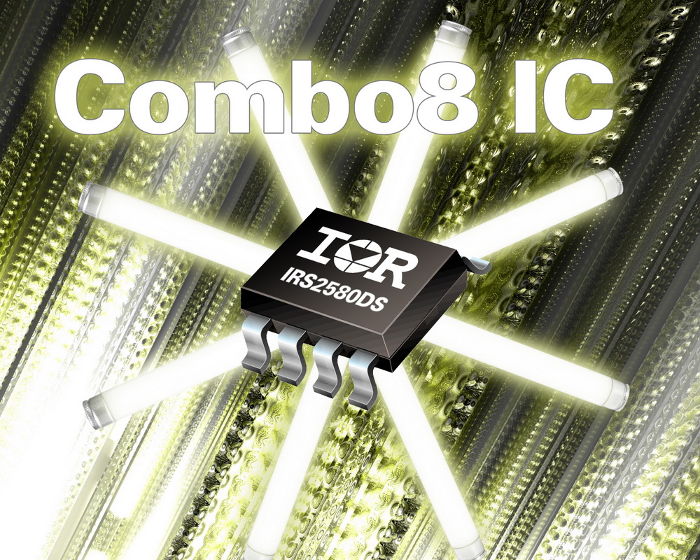 全球功率半導體和管理方案領導廠商國際整流器公司(International Rectifier,簡稱IR)今天推出業界首款集成在單個緊湊型8引腳SO-8封裝的功率因數校正 (PFC) 和鎮流器控制IC —— IRS2580DS Combo8 IC。新器件除了能夠簡化設計,更可以減少整體組件數量,從而能加快節能照明應用的設計過程。