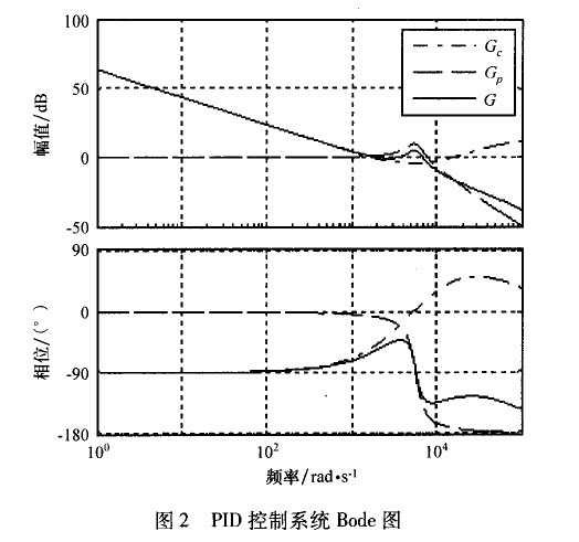 圖2所示為PID控制系統的開環頻率特性圖(Bode圖)。其中,G0為被控對象;G 為PID控制器;G=Gp×G0