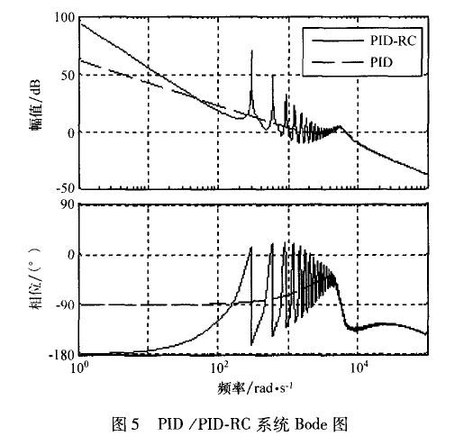 在高頻段,開環增益變得非常小,這對抑制高頻噪聲,提高系統穩定性和魯棒性是非常有幫助的。但是,在非諧波頻率處,沒有嵌入重復控制器的系統開環增益更大一些,這說明重復控制器對位于該頻率的信號控制效果較差。因此,PID控制器在系統中除了有提高系統動態響應速度的作用外,還要調節非諧波信號,彌補重復控制器的不足。