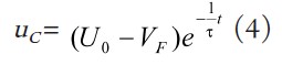 根據初始條件u C ( 0 + ) -V F =uC (0-)-VF =u0 -VF,并令式(2)的通解為uC -VF = Aem ,得該一階齊次微分方程的解為: