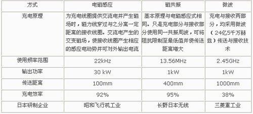 • 采用電磁感應方式、磁共振方式、微波方式3種方式