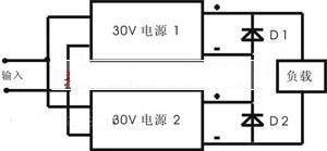 220V交流電壓經整流和濾波后得到320V左右的直流電壓,加至電源模塊輸入端。單DC-DC模塊的最高輸出電壓一般為+48V,要得到+60V的直流輸出電壓,必須采用模塊串聯的方法得到。設計采用兩塊PH600S280-28 DC-DC模塊(調至+30V輸出),通過串聯得到+60V的輸出電壓,如圖1所示。