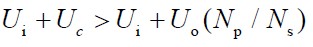 當開關管 Q 關閉時,初級電感 Lp 中的能量將轉移到次級輸出,但漏感Ll 中的能量將不能傳遞到次級,轉移到箝位電路的電容Cc ,然后這部分能量被箝位電阻 R c消耗。電容c C上的電壓在開關管關斷的一瞬間沖上去,然后一直處于放電狀態。電容 C c的值應取得足夠大以保證其在吸收漏感能量和釋放能量時自身兩端電壓uc( t )紋波足夠小。因此電容Cc 兩端電壓uc( t )為基本為恒定值Uc 。同時電容 Cc 上的電壓不能低于次級到初級的反射電壓Uo × (Np / Ns ),否則開關管關斷期間,二極管導通,RCD 箝位電路將成為該變換器的一路負載。因此開關管承受的尖峰電壓被箝位為: