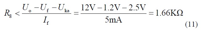 TL431 正常工作時需要陰極至陽極電壓Uka 大于2.5V,PC817 二極管正向導通壓降Uf為1.2V。所以: