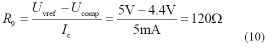 式中Uvref 為芯片8 腳電壓5V, U comp 為芯片1 腳電壓,計算時取系統穩定時1 腳電壓最大值。