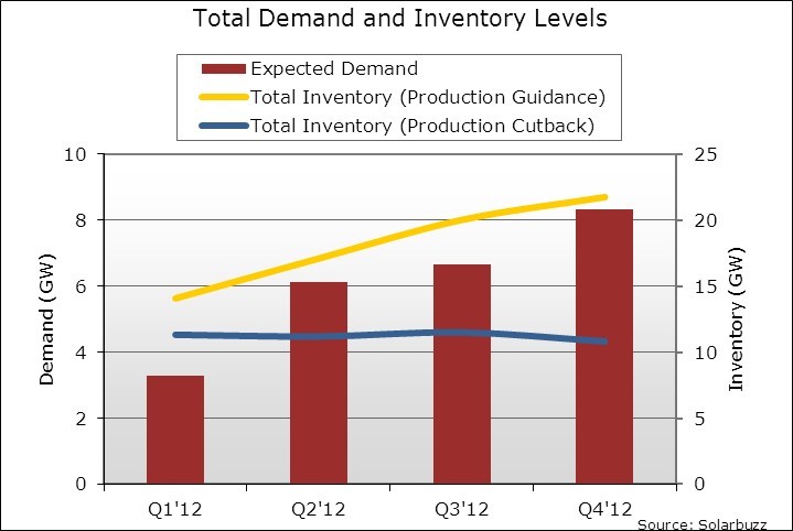 2012對于光伏產業也將是具挑戰性的一年。根據Solarbuzz Quarterly報告的分析,2012年電池總產能將在2011的基礎上增加50%,而終端市場的需求增長的比例預計小于25%。