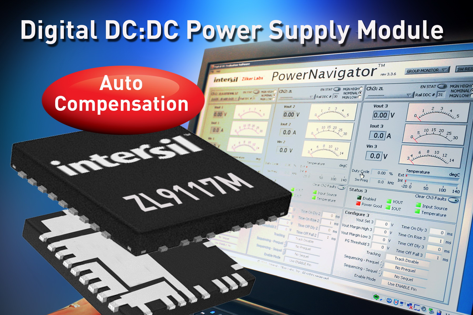Intersil推出最新17A數(shù)字電源模塊ZL9117MZL9117M通過PMBus支持遠程監(jiān)控,可并聯(lián)以提供更高電流。