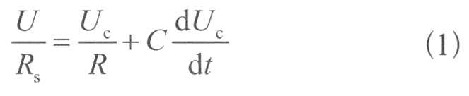 當(dāng)模塊正常工作時(shí),DC/DC開關(guān)電源可以等效為電壓源,其輸出等效電路圖和簡(jiǎn)化后的等效電路圖分別如圖1和圖2所示。其中,U是輸出電壓,RS是等效內(nèi)阻,RL是輸出負(fù)載電阻,C是輸出電容,